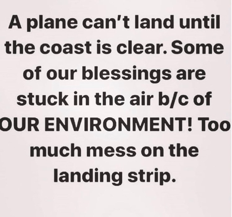 Well that obstructed runway is my life right now. There’s some “mess” on my runway. And my blessings are blocked because of that. I need to get rid of the mess for good. So that I have room for peace, love and courage to land on my runway.