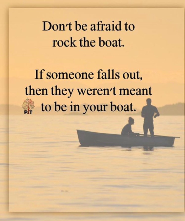 Some people in the boat with you will fall out. Even though you try to save them and throw them a rope. They choose not to grab hold. Some people aren’t meant to ride along with you. There will come a time when you must rock the boat. And tip the boat over.