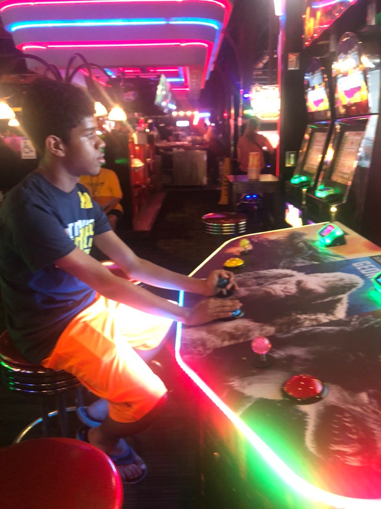 Harrison was having a blast. This was his first time at Dave & Busters. I loved seeing him hang out with Jack. He was happy and that meant the world to me. And as soon as he got his burger he was good!