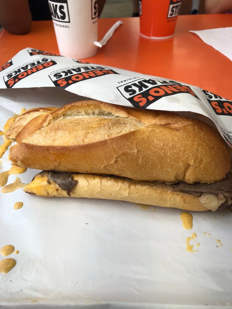 Being back in the city was great. When we got to Geno’s and Pats the lines outside reminded me of downtown Detroit. I didn’t embarrass myself and ordered my cheesesteak. It was delicious. But I think I should go back and try one from Pats too.