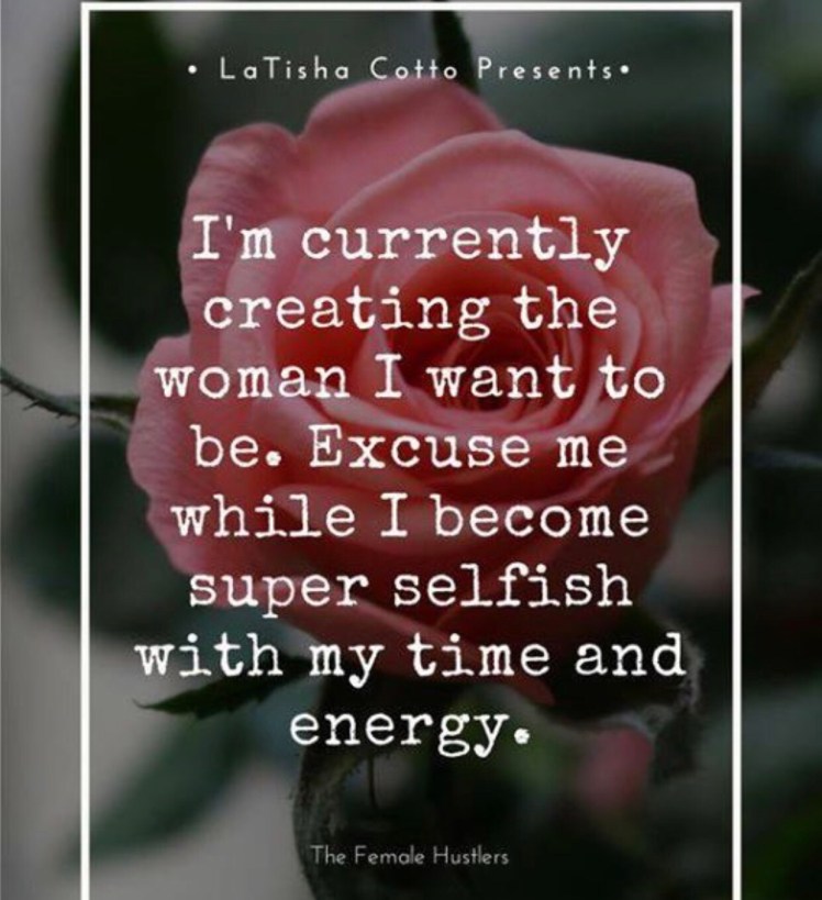 I am creating the woman that was lost. The woman that lost her groove, her mojo and her self esteem. My time and my energy are precious to me.