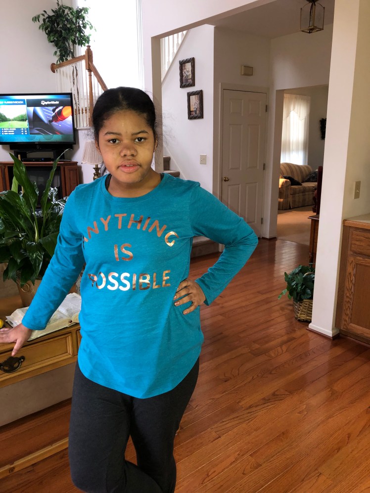 This shirt she’s wearing is perfect. She kept repeating this mantra and I agree with her 100%. Anything is possible for Sydney if we believe and have faith. I watched her brushing her hair in the mirror and heard her proudly say “Look at this Autism!” She had the biggest smile on her face. She posed in the mirror like Naomi Campbell in a photo shoot and then we had a dance party.