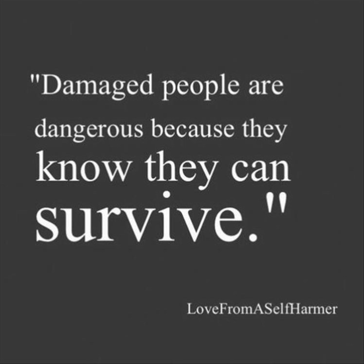 You are a survivor, a victor and a testimony for others. Don’t hide your damage, the scars and pain. Wear your battle wounds proudly, because if you survived what was meant to take you under, you have a warrior heart and spirit. Never underestimate a damaged person.
